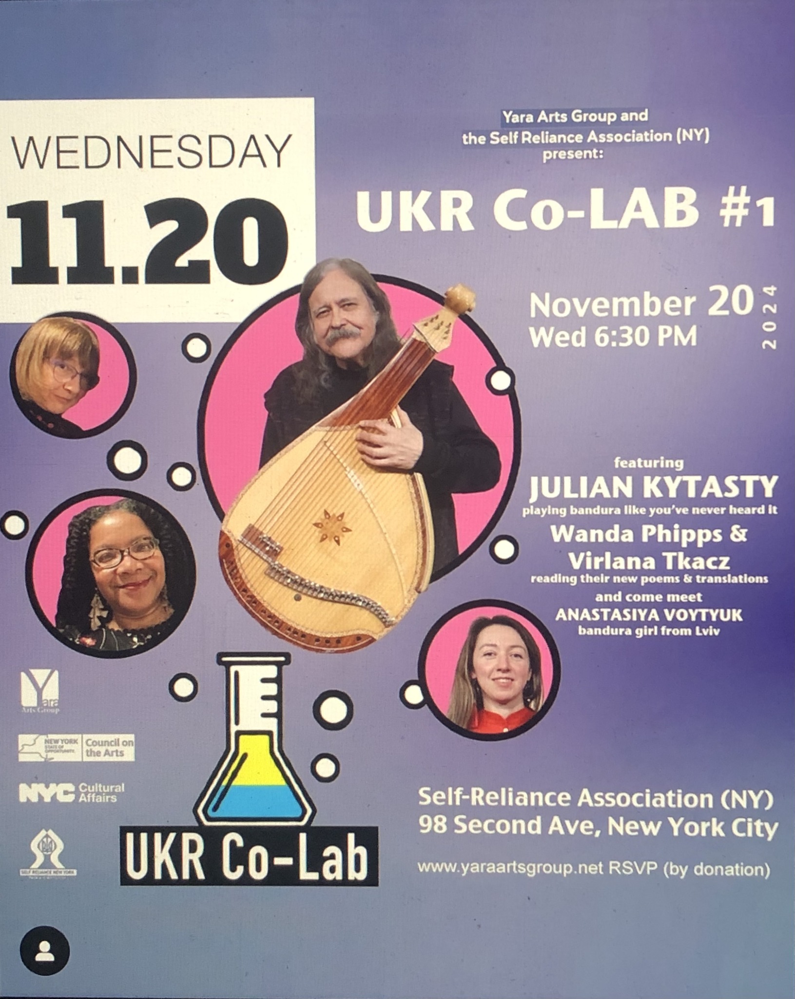 Wanda Phipps, Julian Kytasty and Virlana Tkacz are doing an event at NYU – next Tuesday Feb 27, 2024 at 5:20. It’s FREE, but you must pre-register. More info on www.yaraartsgroup.net